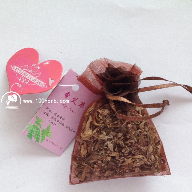 功效:有温中祛寒,祛湿化瘀之功效。艾草广泛的分布于亚洲及欧洲,叶银灰色,花白色,花茎及叶都有挥发性的药香,叶片味似柠檬,常被用于制作花露水,若擦在皮肤上具有防蚊虫叮咬的功效,欧洲人常泡茶饮用,有益肠胃健康。在中国是比较重要的民生植物,用于针灸术中的艾灸,拔火罐治疗风湿病时,用艾草作为燃料效果更佳,传统礼仪中经常在端午节及其他节日制作艾草香包佩戴,或者将艾草悬挂与门口作为辟邪之物。