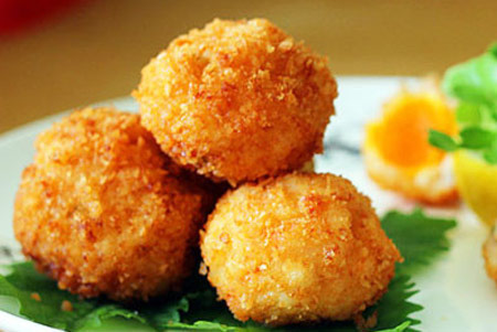紫苏蛋黄虾仁球